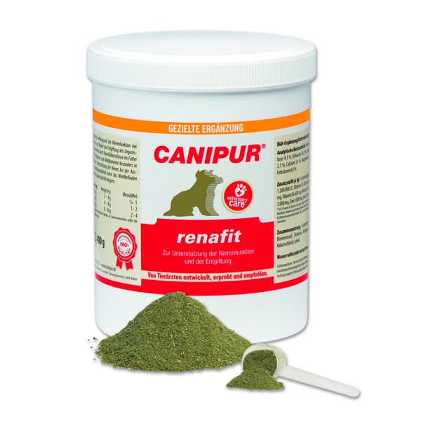 Startseite » Ergänzungsfutter für Hunde » Diätfuttermittel für den Hund mit besonderen Wirkstoffen zur Unterstützung der Nierenfunktion - CANIPUR - renafit