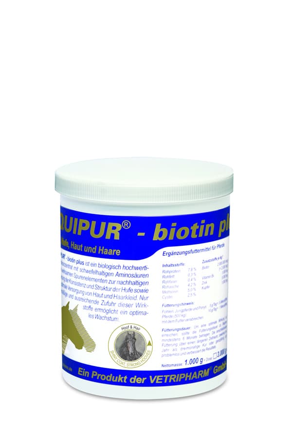 EQUIPUR - biotin plus das Ergänzungsfutter für Pferde mit Biotin (Vitamin H), Vitamin B6, schwefelhaltigen Aminosäuren, Kupfer und Zink.